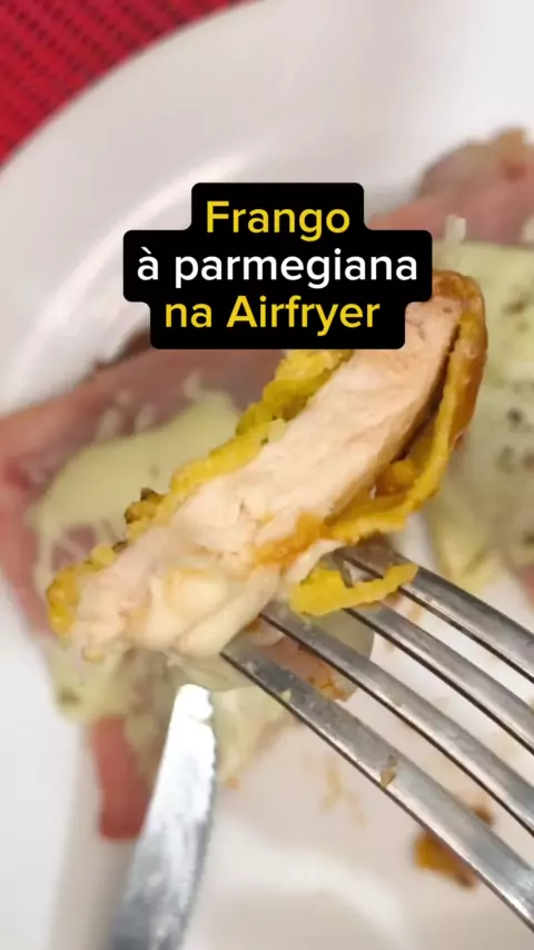 Delicioso #frangoaparmegiana na #airfryer #shorts #receitatop •tempere a gosto •empane com ovo e fubá •pre-aqueça a Airfryer por 5min •asse na Airfryer por 10 min a 180° •vire e asse por mais 5min •coloque molho de tomate, presunto e queijo por cima dos empanados e asse por mais 1min.