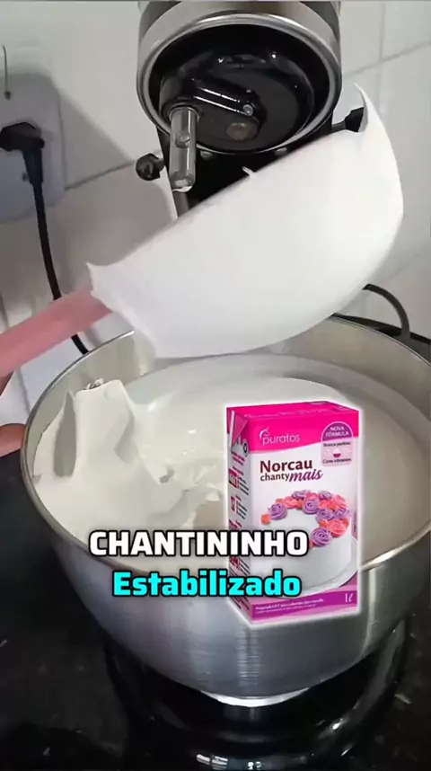 ❄️ CHANTININHO ESTABILIZADO (Ultra Resistente • Ponto de Bico Perfeito • Não Derrete) Ingredientes: - 1 litro de chantilly mega gelado (mínimo 12h de geladeira + 20 no congelador) - 200g de leite em pó Integral - 60g de condensado bem gelado - 10g de glacê real #receita #confeitaria #bolo #sobremesa #recheiofrio