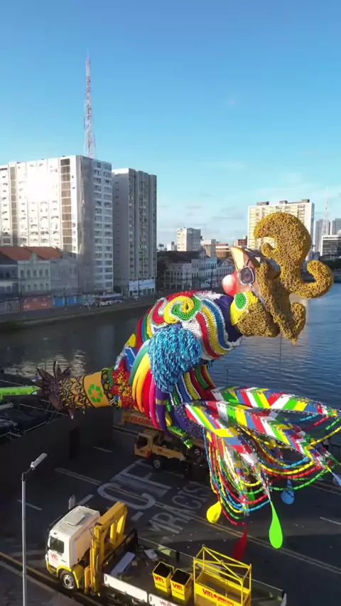 Vídeo:@thalespaivafotografia "O símbolo do Carnaval do Recife já está quase de pé! O Galo Cidadão Ecológico." 🐓🎭🥁🎺 🎤 @almirrouche 📍Recife Pernambuco Nordeste Brasil #recife #recifetem #nordestetem #Pernambuco #Brasil