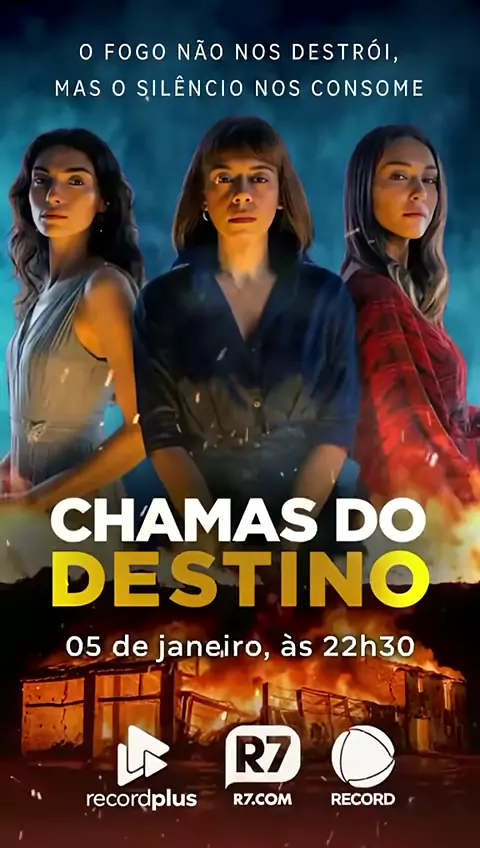 🔥 O fogo não nos destrói… o silêncio nos consome. Amanhã (5) às 22h30 estreia #ChamasDoDestino na Record. Prepare-se para emoções intensas!