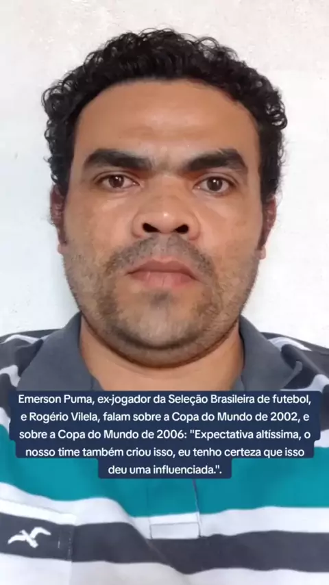 Emerson Puma, ex-jogador da Seleção Brasileira de futebol, e Rogério Vilela falama Emerson Puma, ex-jogado eleção sobre a Copa do Mundo de 2002, e so sobre a e Rogerio Vilela, falar sobre de futeb de 2002, Copa do Mundo de 2006: "Expectativa tativa altissima are a Copa do Mundo altíssima, o nosso time também criou issorteza time tambem eu tenho certeza que isso deu uma da!". ... que isso 0 influenciada.". #emersonpuma #rogeriovilela #futebol #seleçãobrasileira #copadomundo