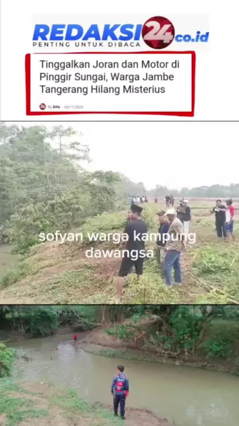 Sopian, warga Kampung Dawangsa Desa Rancabuaya, Kecamatan Jambe, Kabupaten Tangerang, Banten sudah 2 hari menghilang secara misterius. Kades Rancabuaya, Supandi menyebut, berdasarkan laporan pihak keluarga, Sopian terakhir diketahui pergi mancing di pinggiran Sungai Cimanceuri di Kampung Ancol Banyar, Desa Ancol Pasir, Kecamatan Jambe, Kamis  2 November 2023 pagi. #jambe #sungaicimanceuri #hilangmisterius #bpbdkabupatentangerang