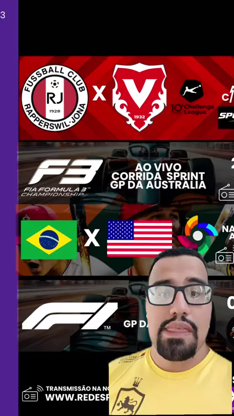 A Rede Sportix preparou uma sexta-feira (06/03) recheada de emoções para você não desgrudar da nossa programação. Do gramado europeu às pistas da Austrália, temos um encontro marcado em cada detalhe! ​Confira o que preparamos para hoje: ​15h15 | ⚽ Futebol Suíço: Rapperswil-Jona x Vaduz (Challenge League). Assista AO VIVO COM IMAGENS no SporKicks! ​21h00 | 🏁 FIA Formula 3: Corrida Sprint do GP da Austrália. Acompanhe a transmissão ao vivo. YouTube Acelera GP ​22h00 | ⚾ Baseball: Um duelo de gi