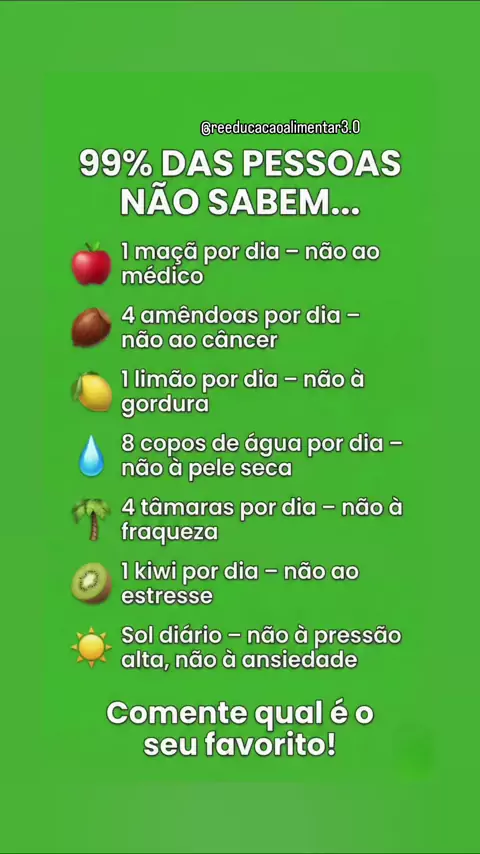 Você não imagina como pequenos hábitos diários podem fazer tanta diferença na saúde. Qual desses você já pratica? 👇 #saude #nutricaosimples #habitosdiarios #bemestar #reeducacaoalimentar
