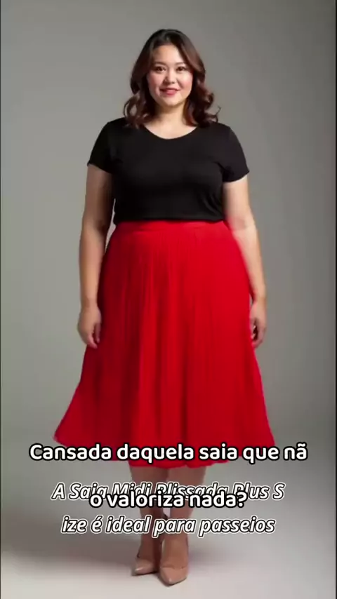 Saia Midi Plissada que valoriza de verdade o corpo plus size #ModaPlusSize #SaiaMidi #EstiloEvangelico #ConfortoEEstilo #LookParaFesta
