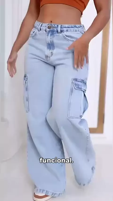Calça Cargo Jeans: Estilo e Conforto que Você Precisa! #calçacargo #jeanswideleg #modafeminina #wlmoda #estiloeconforto