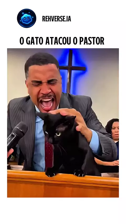 O gato atacou o pastor 😱 #gato #pastor #culto
