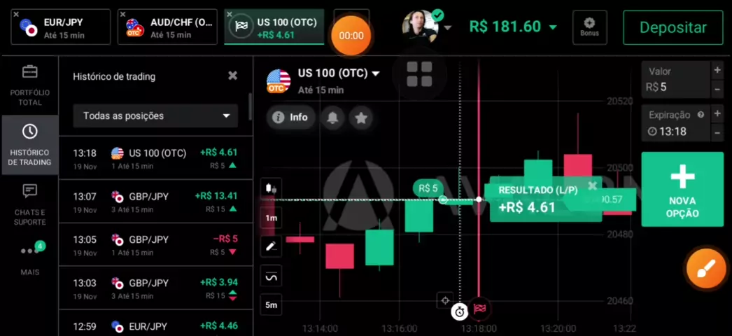 COMESE C/POUCO de 20 pra 181.60 8 X 1 vem comigo eu tenho a senha do Gráfico 🤝👑📈📉🤝🤝👊👍 #Trader #trade #daytrade #opcoesbinarias #avalon