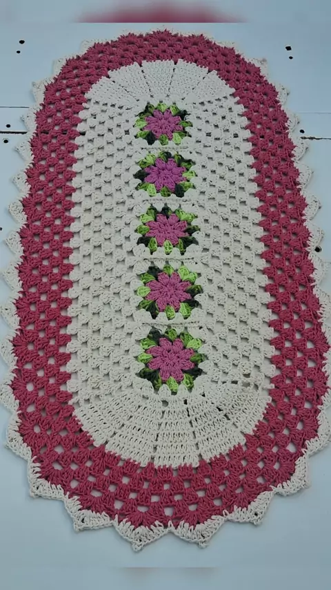 criadora de conteúdo relacionado ao crochê, como tapetes, mesa posta e vestuário artesanal.