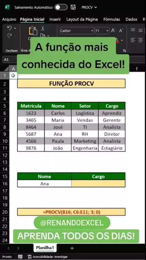 Função mais conhecida do Excel #Excel #procv #viraliza #fy #dicas