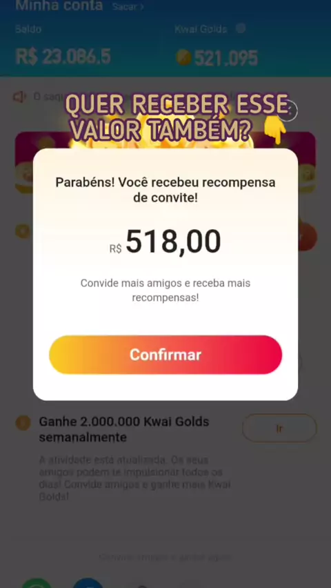 Use o C0DlG0 985475903 e comece ganhando dinheiro. #fy #viral #kwaiBrasil #kwaibonus #revoadanocolçhão