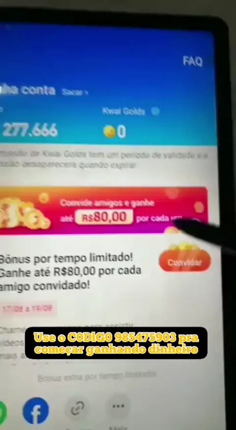 Use o CODIGO 985475903 e comece ganhando dinheiro. #fy #viral #kwaiBrasil #kwaiBonus #Naminhainfancia
