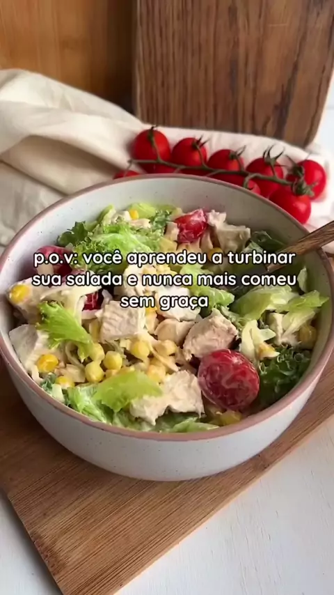 Vem dar um up na sua salada! 🥗 Ingredientes: -alface e tomate à vontade -5 col sopa milho (100g) -2 filés de frango P (100g) -1 fatia de queijo ralada (20g) Molho: -3 col sopa iogurte natural (60g) -1 col sopa de mostarda (15g) -temperos: sal +pimenta + temperos da sua preferência. Tão simples que nem tem modo de preparo, é só misturar tudo! Já salva pra fazer depois ✨ Macronutrientes salada completa: 30g carboidrato 13.8g lipídios 40.2g proteína 390 kcal ma