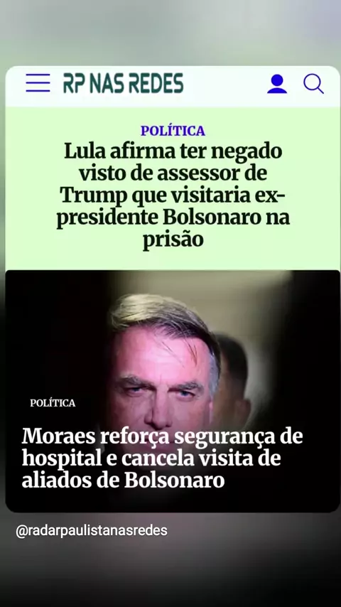 RP NAS REDES, E AS PRINCIPAIS NOTÍCIAS DO DIA (13/03/26): LULA NEGA VISTO A ASSESSOR DE TRUMP QUE VISITARIA BOLSONARO MORAES CANCELA VISITAS DE ALIADOS DO EX-PRESIDENTE E REFORÇA SEGURANÇA EM HOSPITAL E MUITO MAIS VOCÊ CONFERE... ...no www.rpnasredes.com.br Conexão com a informação (Renato Albuquerque, da Redação do Radar Paulista) DIVULGUE E AMPLIE SEUS NEGÓCIioOS NO 'RP NAS REDES'. 📰🗞 #bolsonaro #STF #AlexandredeMoraes #lula #VistoBrasileiro RenatoAlbuquerqueJornalista