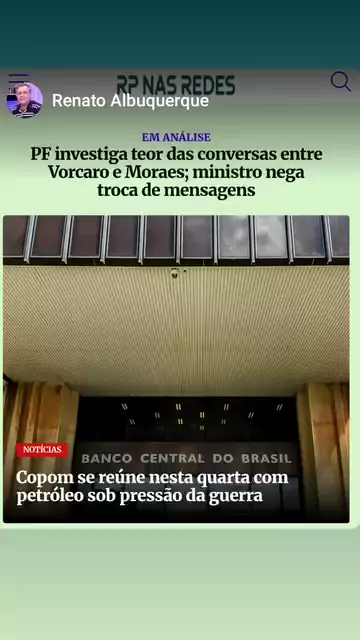 RP NAS REDES, E AS PRINCIPAIS NOTÍCIAS DO DIA (18/03/26): TEOR DAS CONVERSAS ENTRE VORCARO E MORAES É INVESTIGADO PELA PF; MINISTRO NEGA CONTATO COM PETRÓLEO SOB PRESSÃO POR CAUSA DA GUERRA, REUNIÃO DO COPOM DEFINE HOJE NOVA TAXA DE JUROS E MUITO MAIS VOCÊ CONFERE... ...no www.rpnasredes.com.br Conexão com a informação (Renato Albuquerque, da Redação do Radar Paulista) DIVULGUE E AMPLIE SEUS NEGÓCIioOS NO 'RP NAS REDES'. 📰🗞 #Vorcaro #casomaster #moraes #Petroleo #Copom