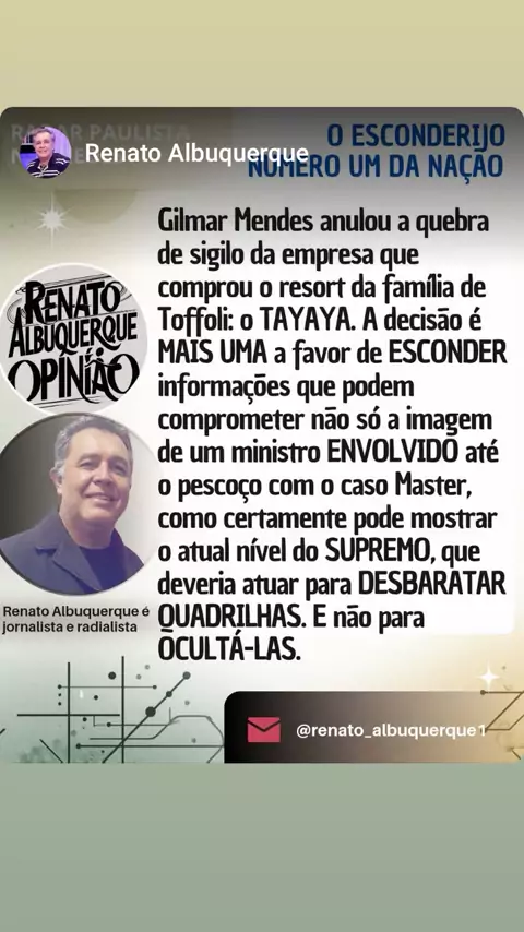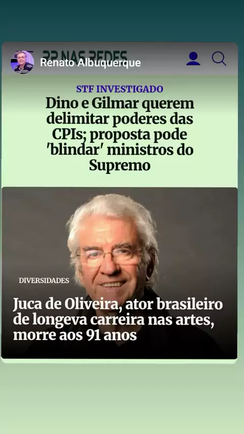 lRP NAS REDES, E AS PRINCIPAIS NOTÍCIAS DO DIA (21/03/26): GILMAR E DINO JÁ FALAM EM DELIMITAR PODERES DAS CPIs; PROPOSTA PODERIA BLINDAR STF MORRE O LONGEVO ATOR JUCA DE OLIVEIRA, AOS 91 ANOS E MUITO MAIS VOCÊ CONFERE... ...no www.rpnasredes.com.br Conexão com a informação (Renato Albuquerque, da Redação do Radar Paulista) DIVULGUE E AMPLIE SEUS NEGÓCIioOS NO 'RP NAS REDES'. 📰🗞 #STF #casomaster #GilmarMendes #flaviodino #jucadeoliveira RenatoAlbuquerqueJornalista RenatoAlbuque