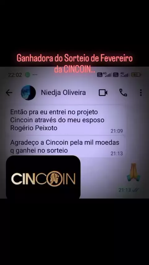 Parabéns Sra Niejda. Mais uma ganhadora do sorteio da Cincoin. Ativa do projeto junto com seu marido puderam colher bons frutos para um futuro promissor. #Cincoin #cincoincripto