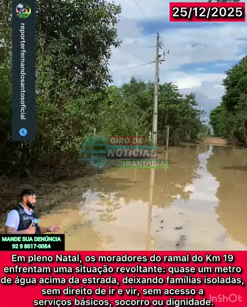 Realidade de Iranduba – Ramal do Km 19 da AM-070 Em pleno Natal, os moradores do ramal do Km 19 enfrentam uma situação revoltante: quase um metro de água acima da estrada, deixando famílias isoladas, sem direito de ir e vir, sem acesso a serviços básicos, socorro ou dignidade. Essa não é uma tragédia natural inesperada. É o resultado do abandono, da falta de planejamento e da ausência de fiscalização do poder público municipal. 👉 E os vereadores? Não fiscalizam por falta de conhecimento ou p