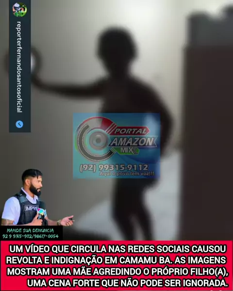🚨 ATENÇÃO, AUTORIDADES! 🚨 Um vídeo que circula nas redes sociais tem causado revolta e indignação no município de Camamu (BA). As imagens mostram uma mãe agredindo o próprio filho(a) — uma cena grave que não pode ser ignorada. A população cobra ação imediata dos órgãos responsáveis. Violência contra criança e adolescente é crime, e casos como esse exigem resposta rápida e eficaz para garantir a proteção da vítima e a responsabilização dos envolvidos. ❓ Onde estão as autoridades? É urgente