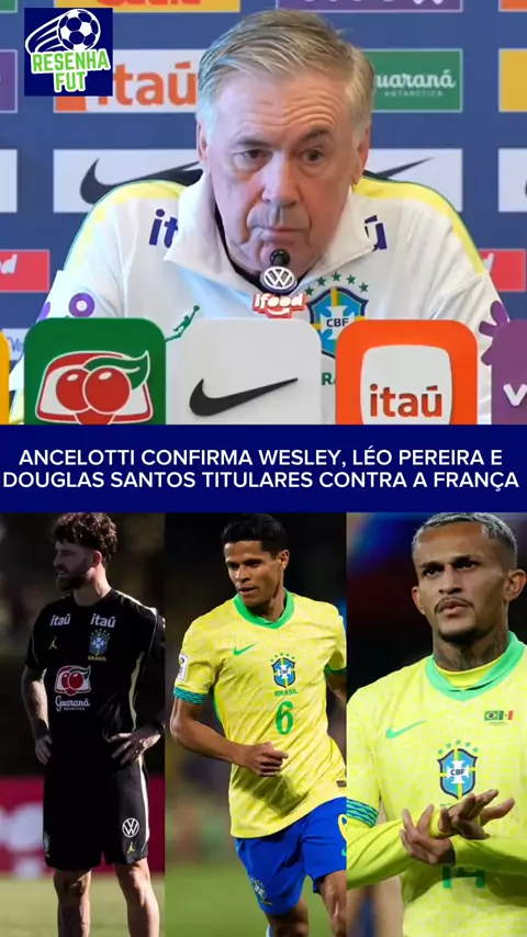 ANCELOTTI CONFIRMA WESLEY, LÉO PEREIRA E DOUGLAS SANTOS TITULARES CONTRA A FRANÇA #SeleçãoBrasileira #copa #ancelotti