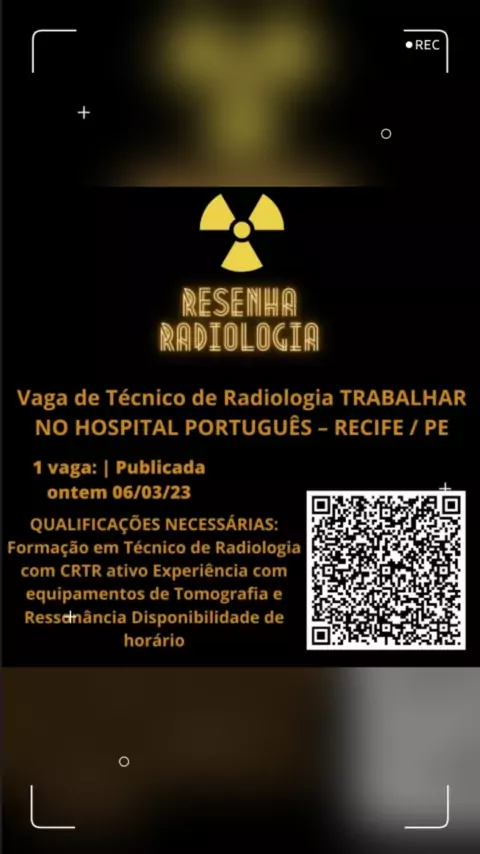 TUDO SOBRE RADIOLOGIA ! ☢️ Dicas ☢️ Dúvidas ☢️ Informações de concursos ☢️ Vagas de emprego E muito mais... Instagram: resenha_radiologia