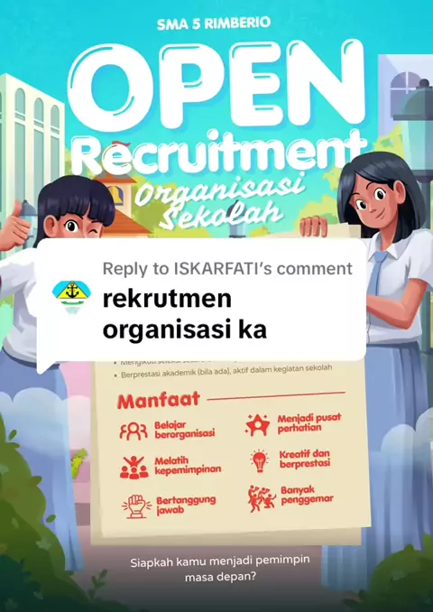 Replying to @ISKARFATI 🌟Poster Open Recruitment Organisasi Sekolah Ilustratif🌟 👉🏻 Cocok untuk Open Recruitment Organisasi, Open Recruitment Ekstrakurikuler, Open Rcruitment PMR #canva ゚viral #canvauntukpendidikan #canvatemplates #postercanva #templatecanva #canvaelementskeywords #elementcanva #canvadesign #hydricdesign #openrecruitment #organisasikampus #organisasisekolah #ekstrakurikuler