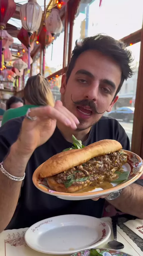 Reviews do Mustache 573 - @thaidiner em Nova York Quem é seguidor raiz sabe que Philly Cheese Steak é meu sanduíche favorito e esse aqui eu já tava namorando antes de vir 🥵 Pqp gurizada, a maior explosão de sabores que eu já comi na minha vida! Cecinha pediu um Phat Thai vegano que tava bom demaisss também, mas não tem jeito, UM PHILLY CHEESE STEAK É UM PHILLY CHEESE STEAK A sobremesa entregou apresentação e também ficou só por isso mesmo 😂 #reviewsdomustache #NovaYork #NYC