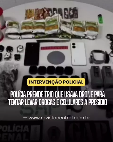 Três homens foram presos em flagrante ao serem surpreendidos operando um drone nas proximidades de um presídio em Itaitinga, na Região Metropolitana de Fortaleza. Segundo a polícia, o equipamento seria utilizado para lançar drogas e aparelhos celulares para o interior da unidade prisional. As identidades dos suspeitos não foram divulgadas. A ação ocorreu após uma denúncia anônima informar a movimentação suspeita de um carro e uma motocicleta que circulavam repetidamente no entorno do presídio....