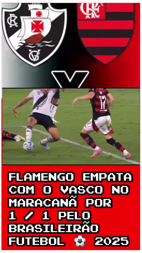 #FLAMENGO EMPATA COM VASCO NO MARACANÃ POR 1 / 1 NO BRASILEIRÃO FUTEBOL ⚽️ 2025👎🏽😡🏆🖤❤️😏🤔🤔