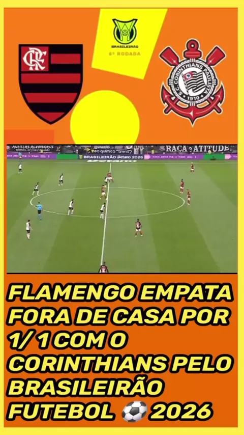 #Flamengo empata 1 / 1 com Corinthians fora de casa no Brasileirão futebol 2016 🖤❤️🤍💪🏾😒😝