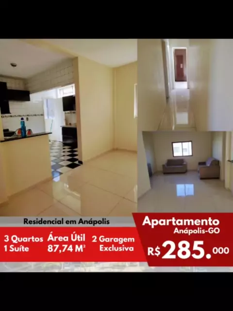 *Apartamento a Venda em Anápolis-GO* *R$ 285.000* Um excelente apartamento com 3 Quartos, sendo uma suíte, sala conjugada cozinha grande, Área de serviço. Mais uma Kitnet incluso. Kitnet no fundo do prédio. Sendo 1 Quarto, Cozinha Americana na parte superior, na parte inferior uma sala e garagem. Localizado na Av. Senador José Lourenço Dias 407, Anápolis-GO São 30 metros a kitnet e o AP é 87 MTS. Confira as fotos e agenda #apartamentos #duplex #parquereal #vilabrasilia #casa
