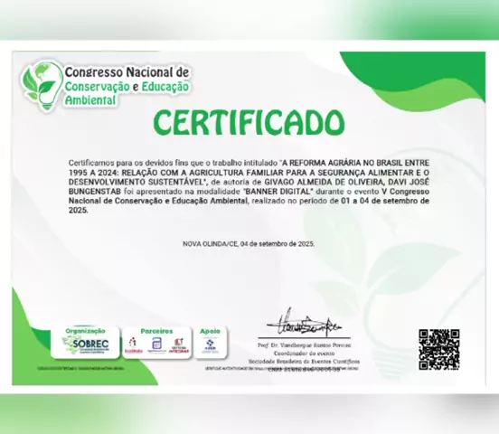 Apresentação e publicação de trabalho no evento online V Congresso Nacional de Conservação e Educação Ambiental (CONEAMB) com 100% de participação, de 01 a 04/09/2025