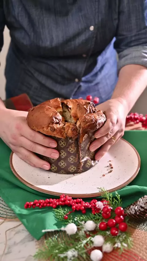 Chocotone trufado super fácil Ingredientes ESPONJA 150 g de farinha de trigo 10 g de fermento biológico 200 ml de água MASSA 350 g de farinha de trigo 100 g de açúcar 1 colher de sopa de essência de panetone 3 gemas de ovo 100 g de margarina 300 g de gotas de chocolate Recheio pode ser com sabor da sua preferência Eu usei 1 copo de Nutella FORNO Aproximadamente 40minutos no forno a 180 graus Fiz um teste com creme de avelã e um com Nutella. Os dois ficaram ótimos. Rendeu dois panetones.