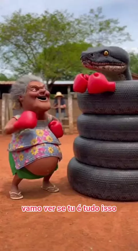 A Dona se deu mal ao praticar Box com a cobra Maricota #humor #cobra #ia #velha #comédia