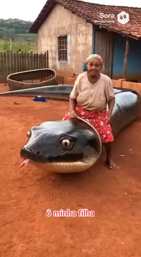 A velha passeando montada na cobra gigante. #humor #cobra #ia #comédia #videoIA