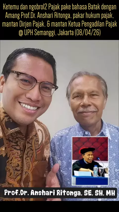 Ketemu dan ngobrol2 Pajak pake bahasa Batak dengan Amang Prof.Dr. Anshari Ritonga, pakar hukum pajak dan mantan Dirjen Pajak serta mantan Ketua Pengadilan Pajak @ UPH Semanggi, Jakarta (08/04/26) . . #anshariritonga #uphsemanggi #hukumpajak #ritonga #simarmata