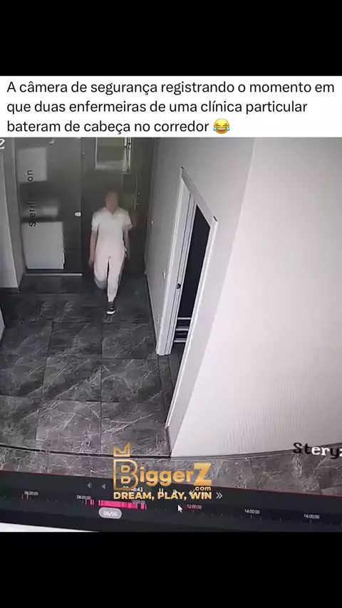 A câmera de segurança registrando o momento em que duas enfermeiras de uma clínica particular bateram de cabeça no corredor 😂 #biggerz @biggerz