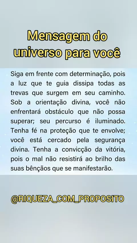 Mensagem do universo para você 🙏🏻 SIGA 👇🏻 @RIQUEZA_COM_PROPOSITO #viraliza #universo #Mensagem #oração #paravoce