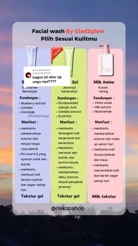 Membalas @echaaaaaa1230 Ini ya kak perbedaan facial wash Glad2glow nya ya sesuaikan kebutuhan kulit kakak ....😊#glad2glow#facialwash#glad2glowid#glad2glowcleanser