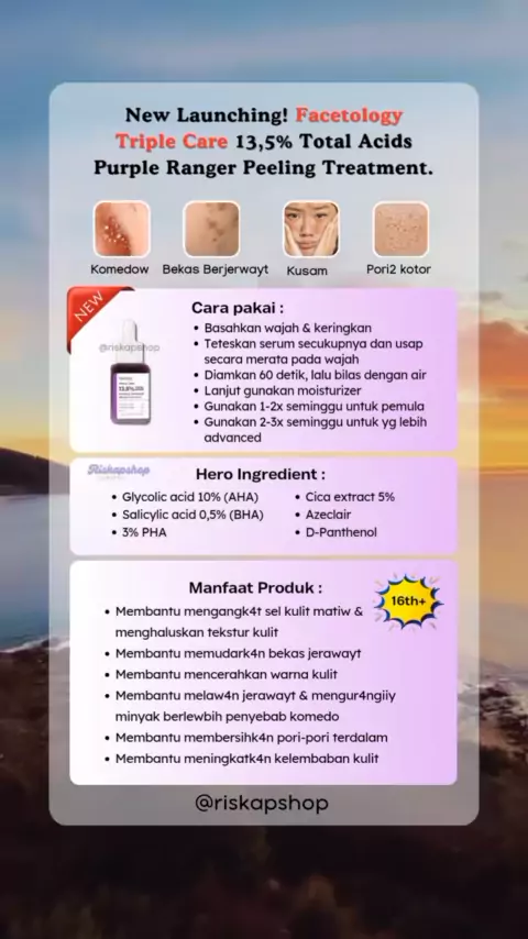 Ada gebrakan baru lagi nih dari Facetology..... Kamu udah coba belum kalo belum cobainn ya ladies....😍#facetology#peelingserum#facetologypeelingserum#peeling#skincare#facetologypurpleranger