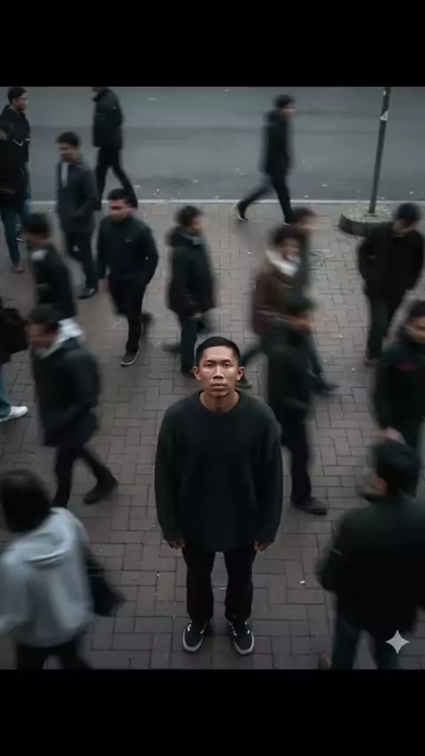 Step 1 Ubah Gambar: - Buka gemini - Pilih gambar pisang - Upload foto kalian - Masukan Prompt : "Cinematic overhead shot of me standing still a brick city sidesalk, wearing a dark oversized sweater. Motion-blurred crowd rushes past around me. Moody lighting 35mm film look. shallow depth of field, sharp focus on me. Ration potrait 4:3" - Download Step 2 Bikin Video: - Buka gemini lagi - Pilih Video Veo 3 - Upload gambar yang baru diubah - Masukan Prompt : "Keep the main subject in sharp focus at...