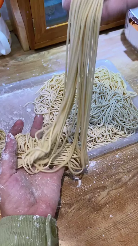 Gawat nih, aku jadi ketagihan bikin mie sendiri. Bahan: 2 cup tepung terigu protein tinggi 1 cup tepung terigu protein sedang 1 sdt garam 3 butir telur 1/2 sdm soda kue 170 ml air #MenuEnakDiSnack #rizkilunca