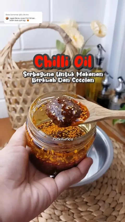Menanggapi pada @En_Nchim(O150000963754060) maaf ternyata blm aku jawab pake video, cuma dijawab dlm hati. ☺ #chilioil #NgontenDiSnack #resepsimple #rizkilunca