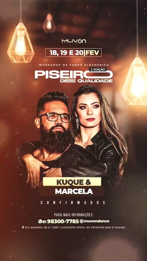 É sobre isso!!! Vamos abalar as estruturas Piseirísticas novamente! É a segunda Ed. do evento mais top do Brasil: a 2º Ed. do PISEIRO DE QUALIDADE! Reunimos os melhores pra entregar o melhor do Piseiro pra você! (Profissinais tops, bandas tops e pessoas tops) E a novidade é a seguinte: serão dois níveis: Iniciante: para quem está começando no Piseiro e Intermediário/Avançado: para quem quer aprimorar seu Piseiro de Qualidade! E a outra novidade bombástica é que teremos um desafio, o Primeiro