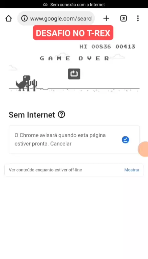 DESAFIO T-REX - JOGUINHO OFF LINE DO GOOGLE - #jogo #foryou #desafio #fyp #viral