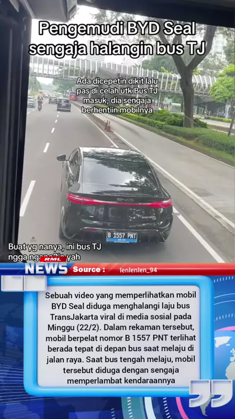 Diduga Sengaja Perlambat Laju, Pengemudi BYD Seal Halangi Bus TransJakarta #mobil #perlambatlaju #halangi #bus #transjakarta