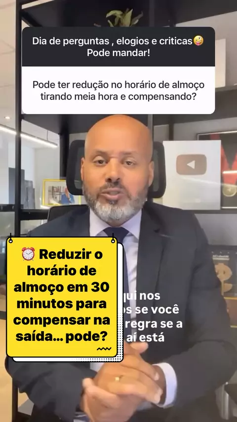 ⏰ Reduzir o horário de almoço em 30 minutos para compensar na saída… pode? ⚖️ A lei permite a redução do intervalo apenas com acordo ou convenção coletiva e respeitando os limites legais. Sem isso, a empresa pode estar gerando direito a horas extras e indenização do intervalo. 👉 Nem toda “compensação” é válida perante a lei. 🔗 Acesse o link na bio para saber mais.