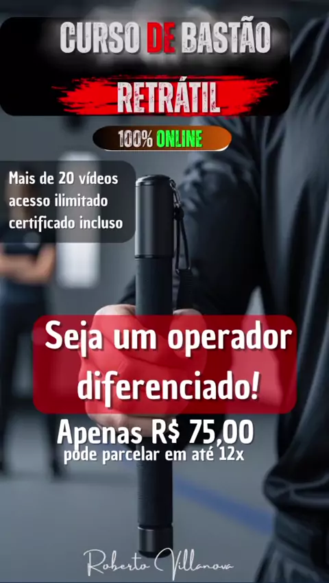 Seja um operador de Bastão Retrátil diferenciado! Melhor saber e não precisar do que precisar e não saber! Técnicas de Bastão Retrátil que podem salvar sua vida! Aproveite essa oportunidade! São mais de 20 vídeos explicando passo a passo, ao final ganha certificado e ainda de bônus ganha acesso ao nosso grupo do WhatsApp para tirar qualquer duvida! Me chame agora mesmo ! Que envio o link para adquirir! #defesapessoal #artesmarciais #robertovillanova #bastaoretratil #segurançapública