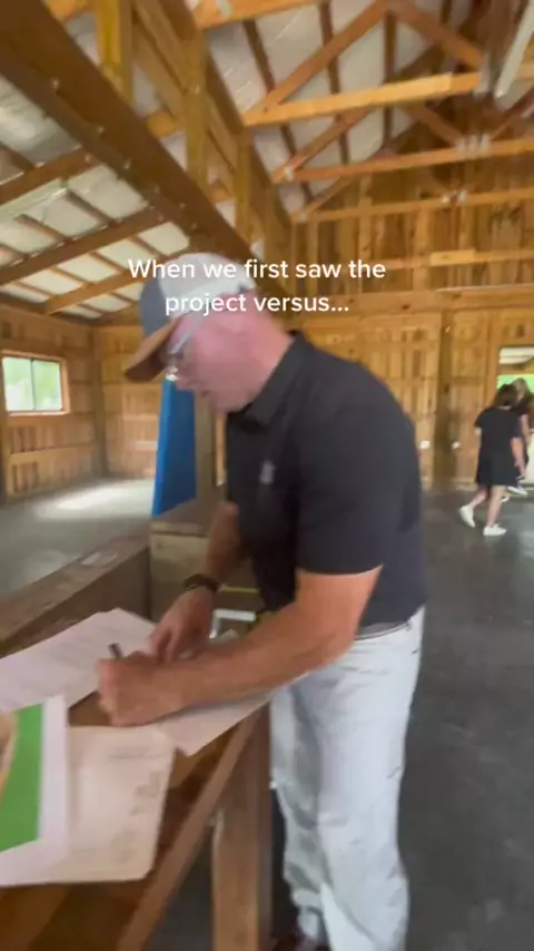So lucky to do this for a living🤎 before and after!#barnlovers#barnlove#barndesigner#barndominium#bzsbarns#mileycyrus#partybarn#partybarncomingsoon#barnsof#barnreno#beforeandafter#beforeandafterhome#rusticglambarn#rusticglamdecor#hometransformation#barninspo