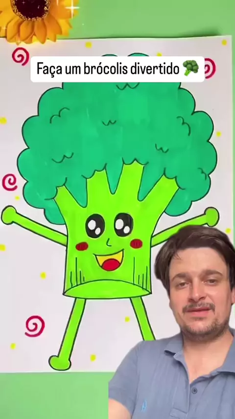 Desenhe um brócolis usando sua mão como base. #desenho #brócolis #crianças #férias #divertido